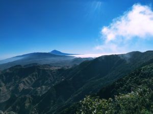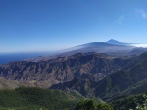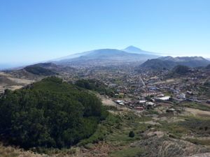 Jest tu kilka punktów widokowych przy których znajdują się duże parkingi i z których rozpościera się nieziemski widok na Teneryfę, Gran Canarię i ocean. Znajdują się tu również trasy dla pieszych. Pierwszy punkt widokowy, do którego dojechaliśmy to „Mirador De Jardina”, z którego roztacza się piękny widok na miasto La Laguna, wyspę i wulkan Teide. I pełno tu też wszędobylskich na całej Teneryfie jaszczurów. Stojąc w sandałach i zachwycając się cudownymi widokami tutaj, podbiegł do mnie niepostrzeżenie jaszczur i delikatnie chapnął mnie w palec u stopy. Zupełnie się tego nie spodziewałam po tych „niewinnych” słodziakach.