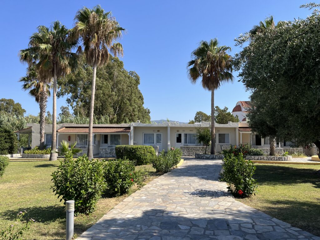 Hotel, w którym spędziliśmy cudowne wakacje. To tradycyjny grecki hotel. Stary, ale bardzo zadbany. Hotel tętniący życiem, z prawdziwie wakacyjną atmosferą, oferujący wiele atrakcji. Otoczony pięknym ogrodem z palmami.