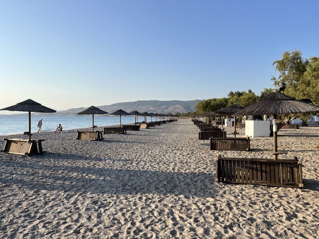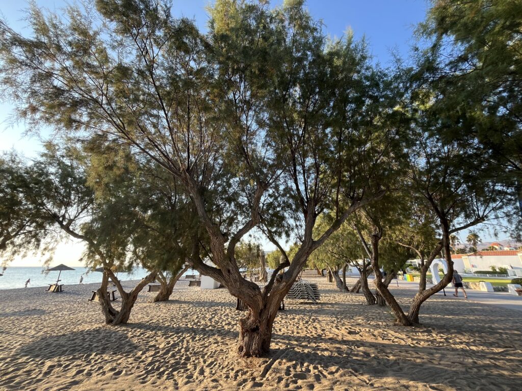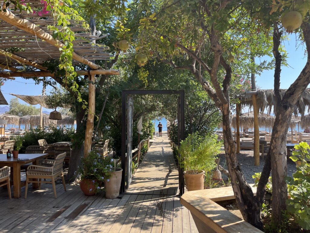 Hotel ma bezpośredni dostęp do morza. Plaża Lambi Beach kamienisto- piaszczysta z pięknym widokiem na błękitne Morze Egejskie znajduje się bardzo blisko hotelu. Niestety niezbyt zadbana, a mogłoby być tutaj tak pięknie. Jedyne co nam się w tym hotelu nie podobało, to właśnie plaża. Leżaki na plaży dodatkowo płatne, ale można położyć się na piasku i odpocząć w cieniu drzew. Buty do wody są tu niezbędne, gdyż wchodząc do wody na boso, potwornie bolą stopy. Bar przy plaży jest dodatkowo płatny. Jednakże plaża jest tak blisko barów hotelowych, że to nie problem tam podejść. W hotelowym, pięknym ogrodzie nieopodal plaży można również skorzystać za dodatkową opłatą z masażu.