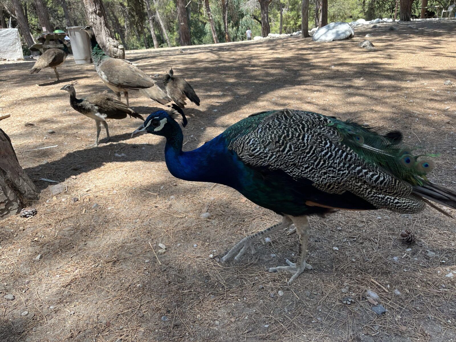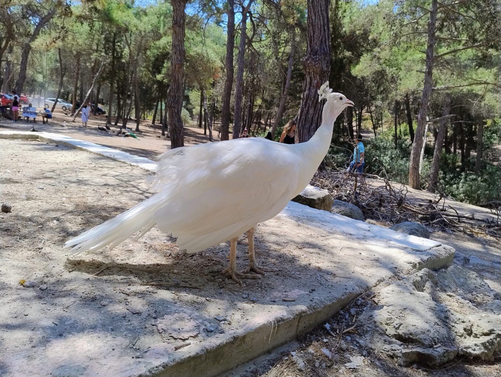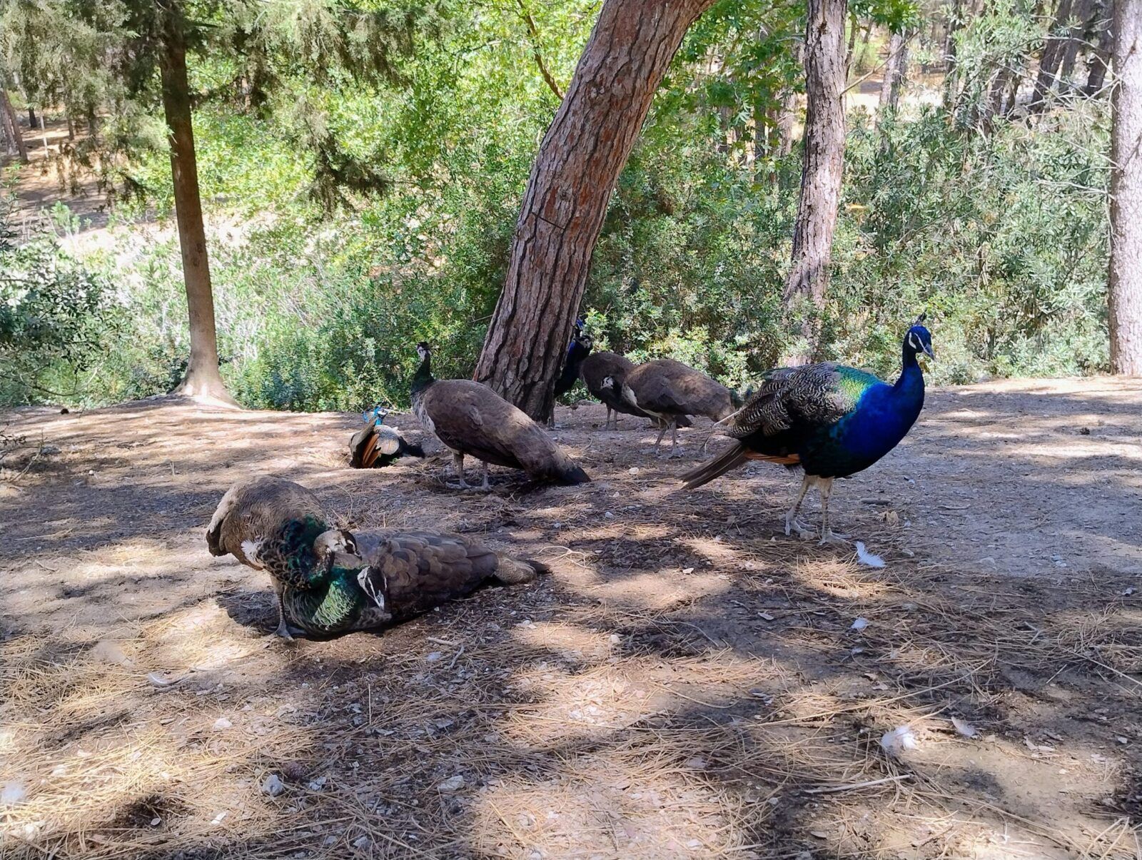 Plaka forest to las pełen dziko żyjących pawi. Jest ich tu mnóstwo. Są piękne, a ich pióra mienią się różnymi kolorami. Pawie są niezwykłą ozdobą tego lasu. Spacerują między drzewami, przyglądają się ludziom i odpoczywają w cieniu. Dorosłe pawie są przepiękne, ale najbardziej urocze są maluszki. Są tu też koty i kaczki. Na miejscu można kupić jedzenie dla pawi i je nakarmić. My karmiliśmy pawie soczystym arbuzem, którego dostaliśmy od starszego Greka.