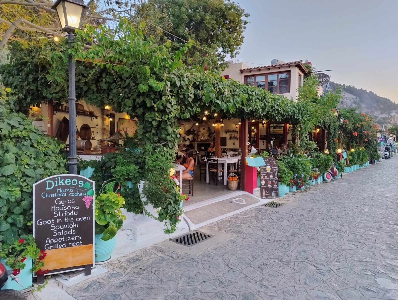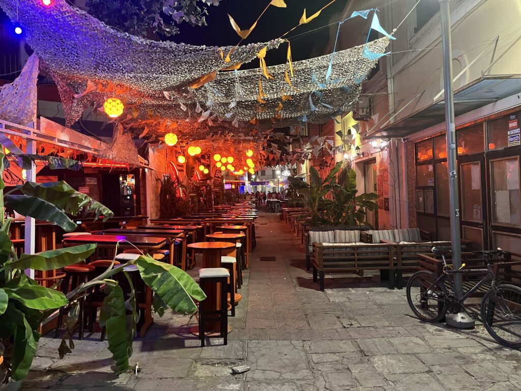 A ulicę Nafklirou trzeba zobaczyć koniecznie. Najpiękniejsza uliczka w Kos, położona w bliskim sąsiedztwie starożytnych ruin Agory. Niesamowicie klimatyczne tawerny kuszące zapachami i kolorami, kawiarnie, bary, kluby, dyskoteki tętniące życiem, idealne na nocne wyjście. Kos słynie z najlepszego życia nocnego na wyspie, które skupia się głównie przy ulicy Nafklirou. Niestety nie zwiedziliśmy tu wszystkiego, ale poczuliśmy niezwykłą atmosferę tego miasta.