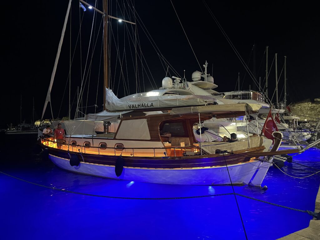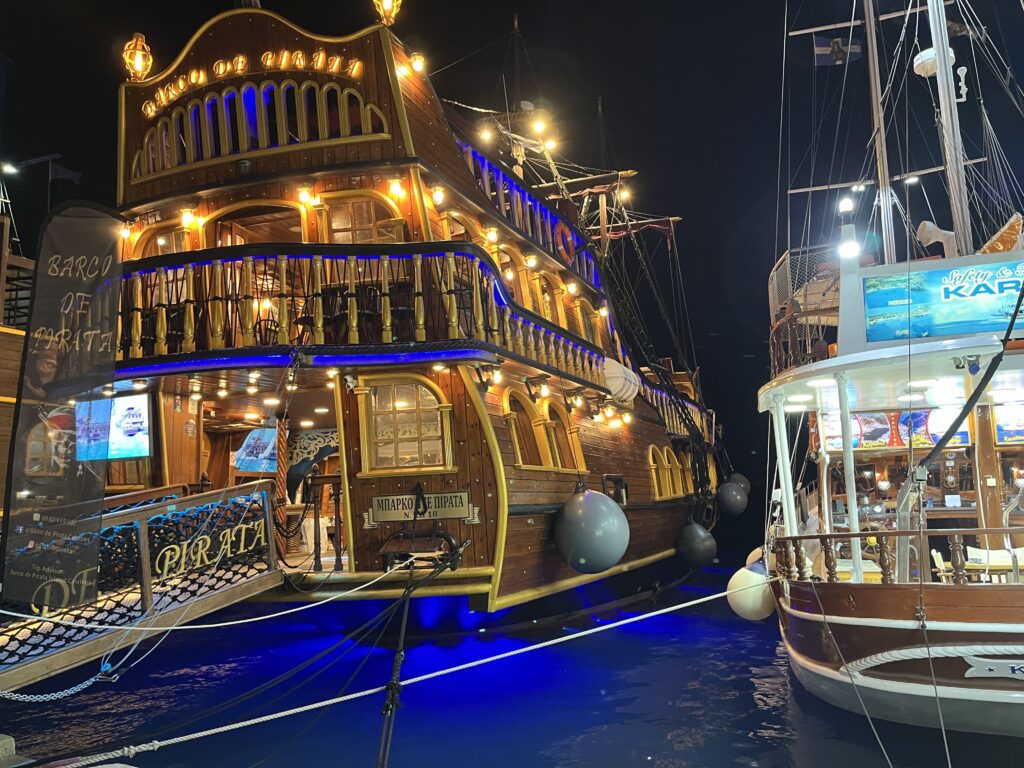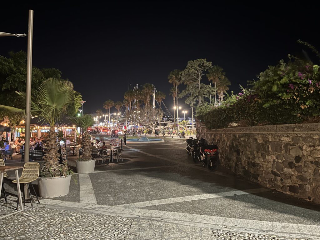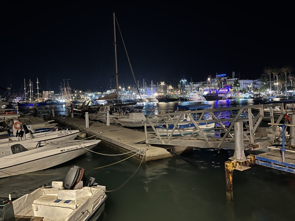 Doszliśmy do portu. Sam port niesamowicie urokliwy, pełen łódek delikatnie kołyszących się na wodzie, statków wycieczkowych i dużych, luksusowych jachtów efektownie oświetlonych.