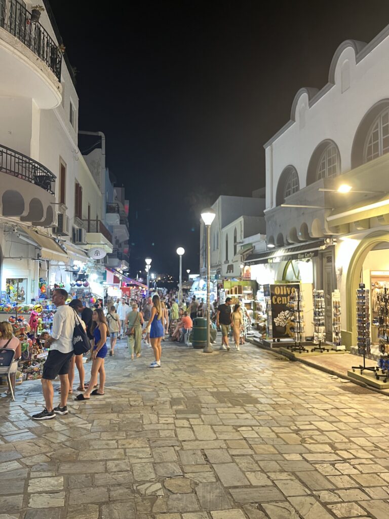 Wieczorny spacer kolorowymi, pięknie oświetlonymi uliczkami pełnymi greckich sklepików i tawern był cudowny. Kos to miasto tętniące życiem, pełne turystów. Mogłabym tu chodzić godzinami.