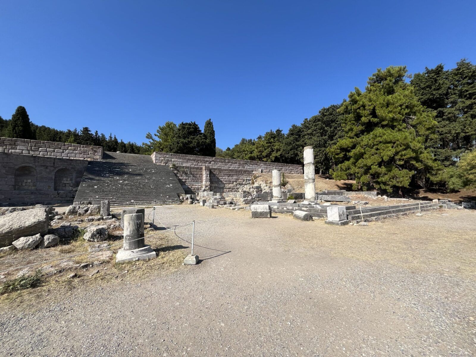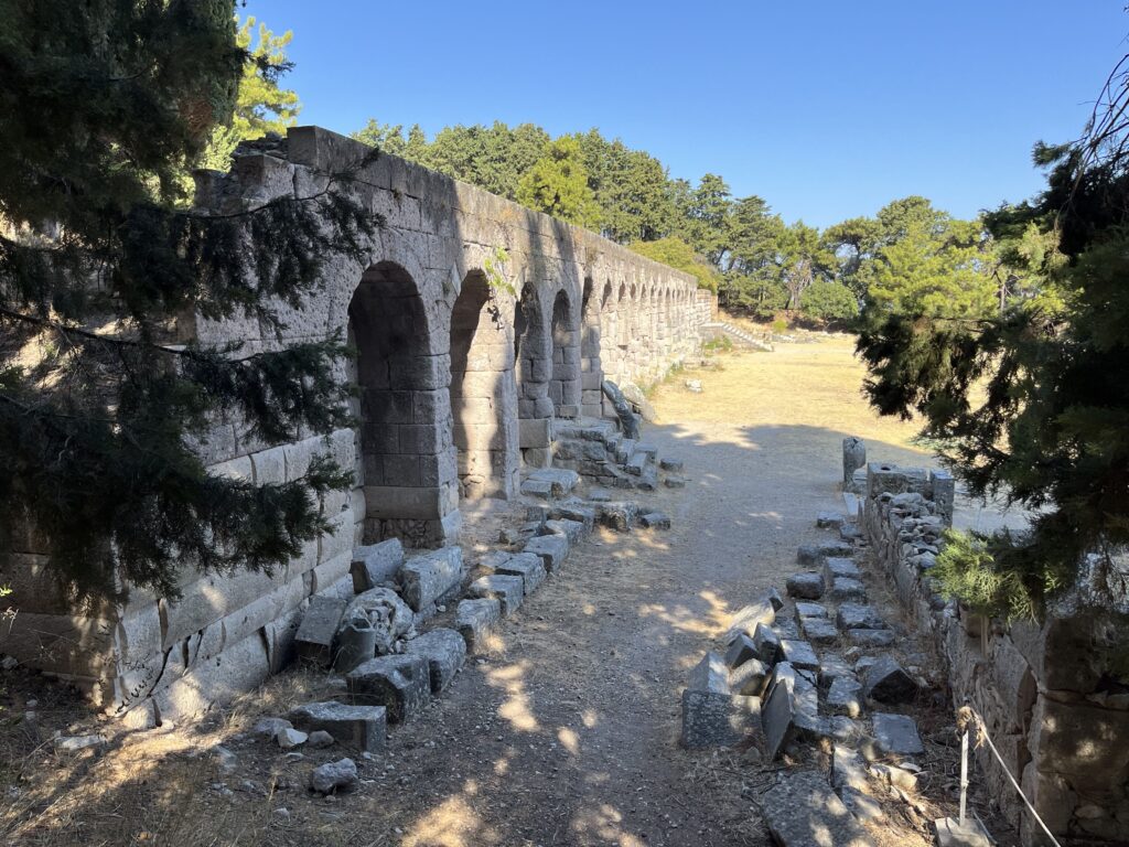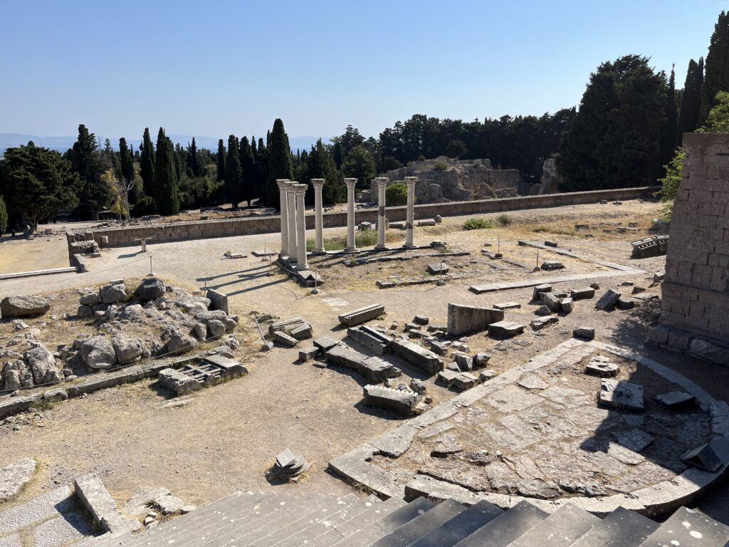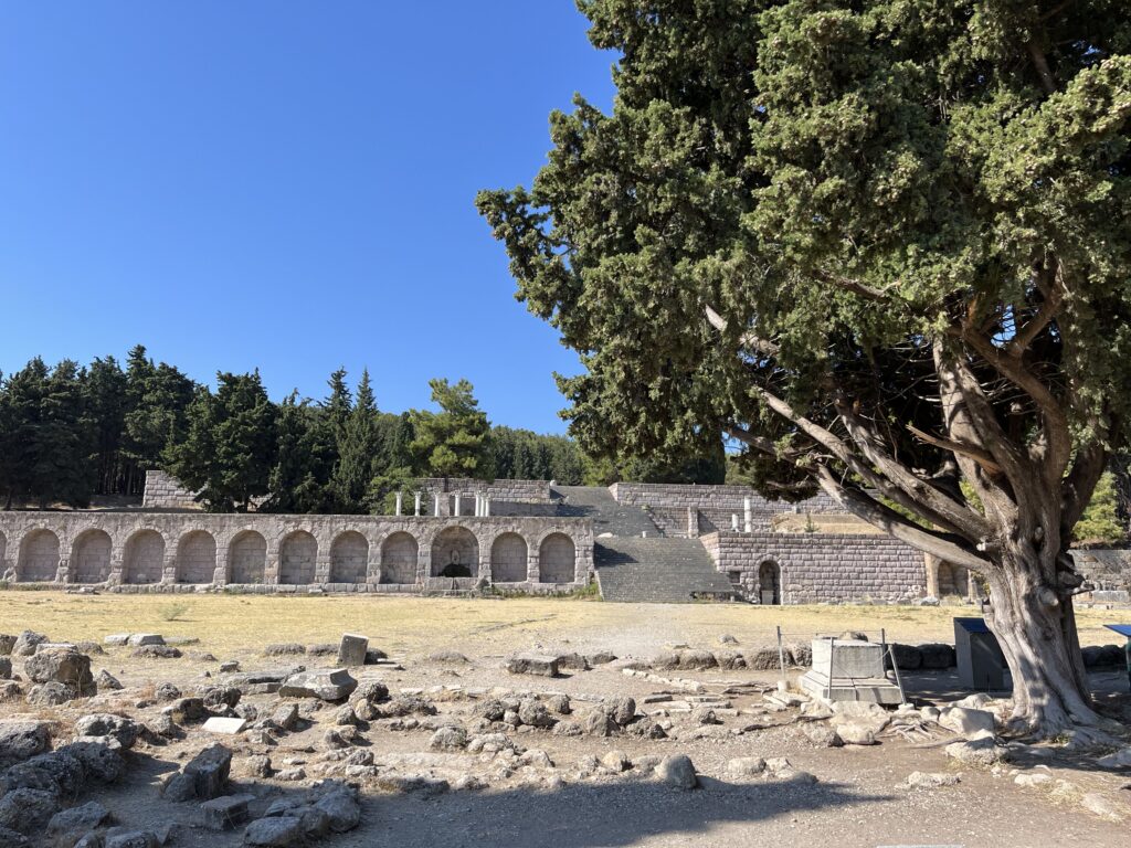 Asklepiejon– ruiny Świątyni Asklepiosa- greckiego boga sztuki lekarskiej, położone na pięknym wzgórzu w okolicach miasta Kos. Przyjechaliśmy tu z samego rana, gdy upał jeszcze tak nie doskwierał i to była bardzo dobra decyzja. Na miejscu jest duży parking. Bilet wstępu 8 Euro ( 2024 r.) Dzieci i studenci wchodzą za darmo ( wystarczyło tylko okazać paszport).