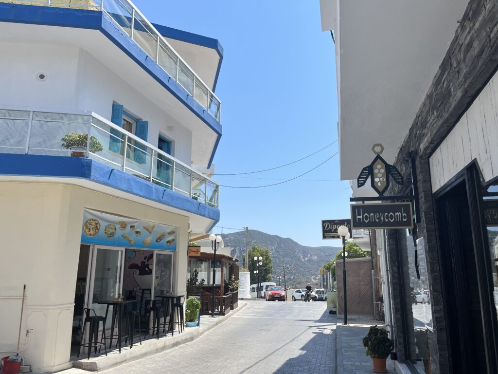 Melissa– sklep z miodem znajdujący się przy drodze na Kefalos. Jadąc drogą zobaczycie to miejsce z daleka, gdyż przy drodze jest duży napis nazwy sklepu, a przed wejściem stoi figura pszczoły i plastra miodu.