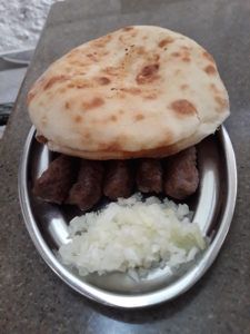 Wychodząc udaliśmy się w kierunku starówki, a że byliśmy głodni to postanowiliśmy coś zjeść. Znaleźliśmy bardzo przyjemną knajpkę, w której ładnie pachniało i podawali tam słynne bałkańskie Cevapi. Mielone mięso pieczone na grillu podane w specjalnej bułce i z cebulką. Cevapi było bardzo smaczne.