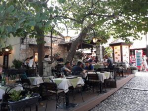 Po smacznym posiłku udaliśmy się na starówkę. Mostar ma bardzo piękną, klimatyczną starówkę. Stare kamienice, wąskie, bardzo wyślizgane uliczki brukowe, restauracje oraz stragany z pamiątkami na których sprzedawane są różności. To miejsce niesamowicie kolorowe. A wszędzie tłumy turystów.