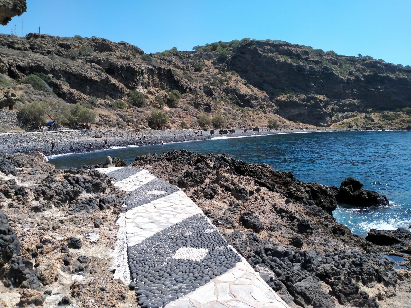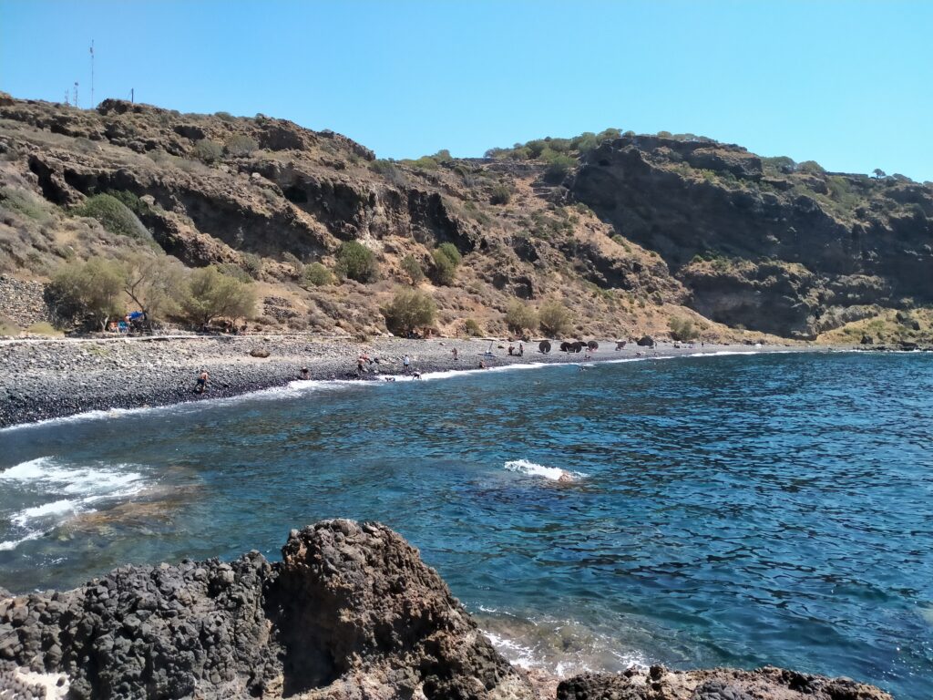 U podnóża skały na której stoi klasztor, mieści się plaża Chochlaki pełna dużych, czarnych otoczaków. Byliśmy tu przez chwilę.