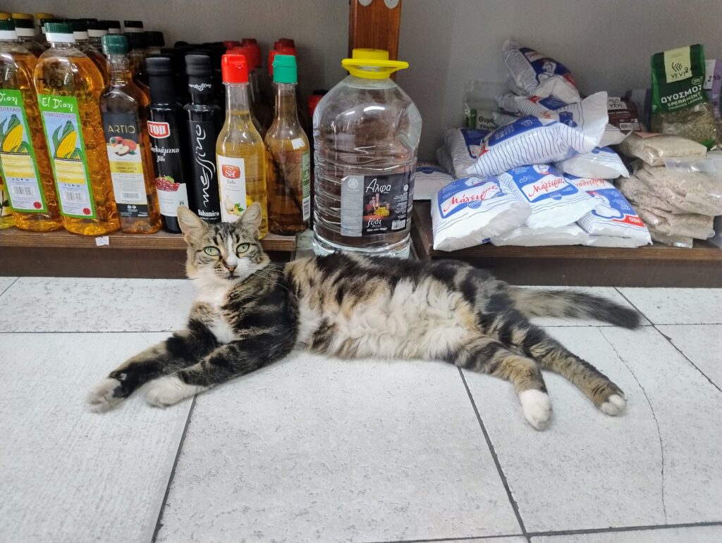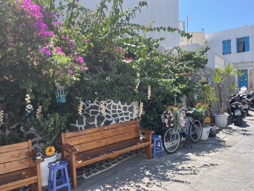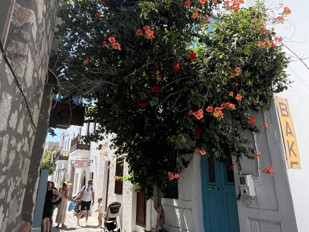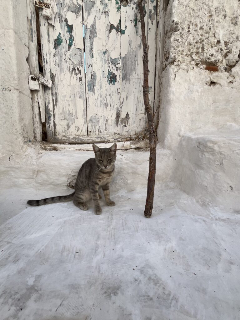 Spacer po wąskich uliczkach, pełnych kwitnących kwiatów i pachnących ziół, sklepików oraz kotów śpiących na ciepłych, kamiennych schodach, był niezwykle przyjemny. Błądziliśmy krętymi, cichymi uliczkami, zaglądaliśmy do malutkich sklepików, piekarni, głaskaliśmy koty, cieszyliśmy się słońcem, spokojem, zapachem ziół i kwiatów. Mandraki urzekło nas spokojem.