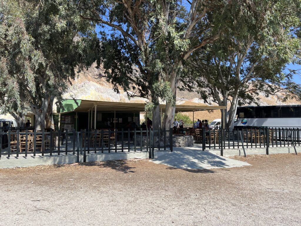 Nasz pobyt na wulkanie trwał 40 minut. Zbyt krótko, aby choć chwilę odpocząć w cieniu lub wypić kawę wulkaniczną, która jest przygotowywana tylko w tutejszej kawiarni. Kawę tylko dla dorosłych z dodatkiem Soumy- lokalnego bimbru i Sumady- syropu z przetartych migdałów.