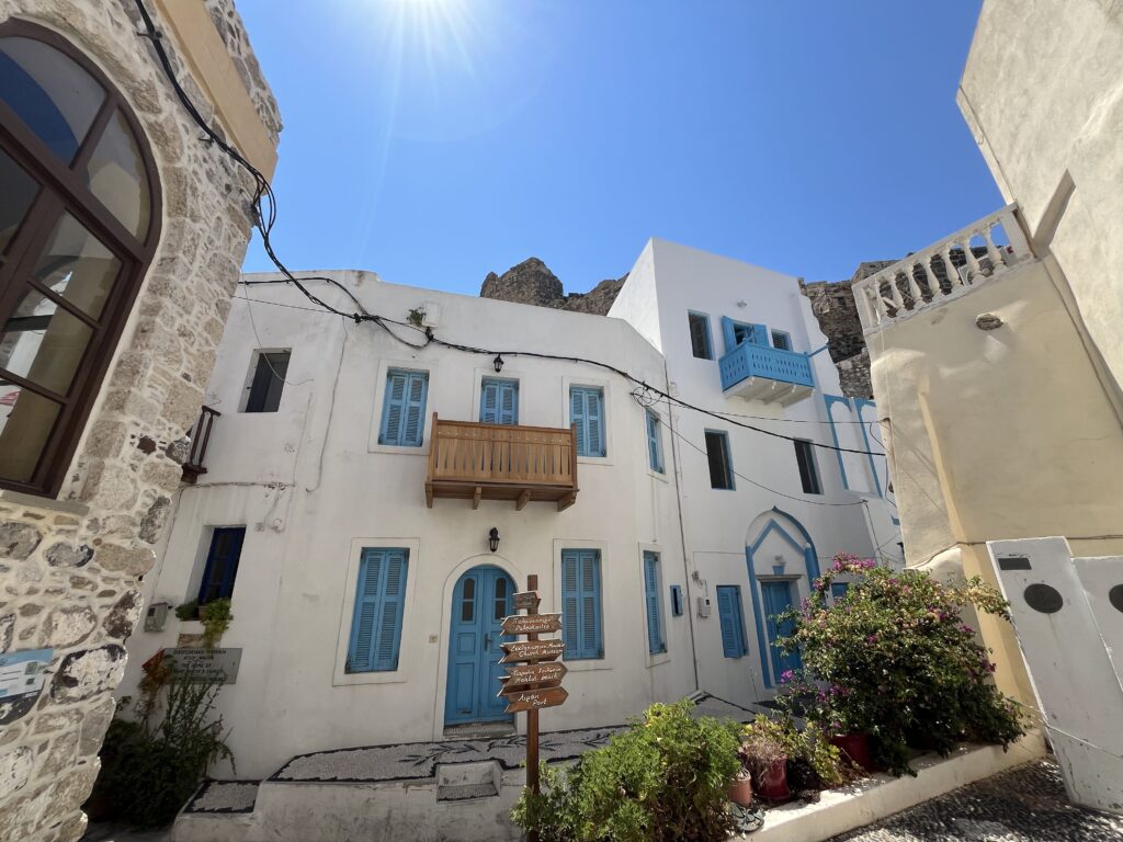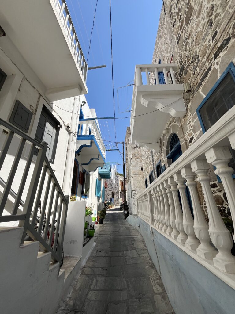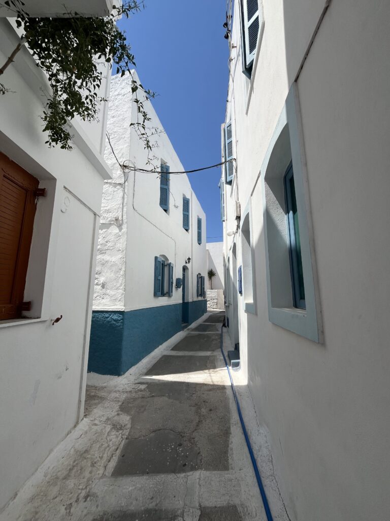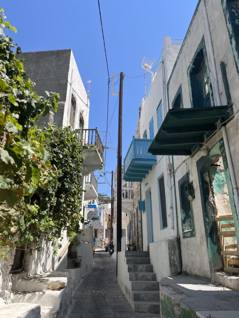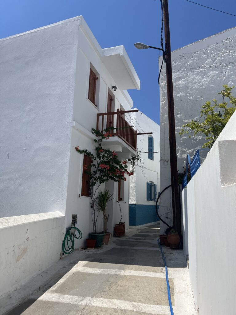 Po zwiedzeniu tej malutkiej wioski, zjechaliśmy krętymi drogami w dół do stolicy wyspy Mandraki.