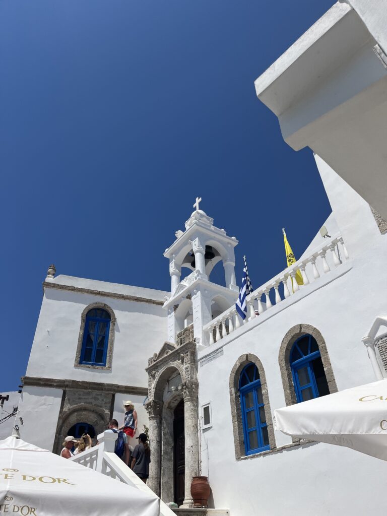 Główny plac przy kawiarniach i stojący przy nim kościół oraz punkty widokowe na końcu wioski z których rozpościera się piękny widok na krater wulkanu oraz na morze.