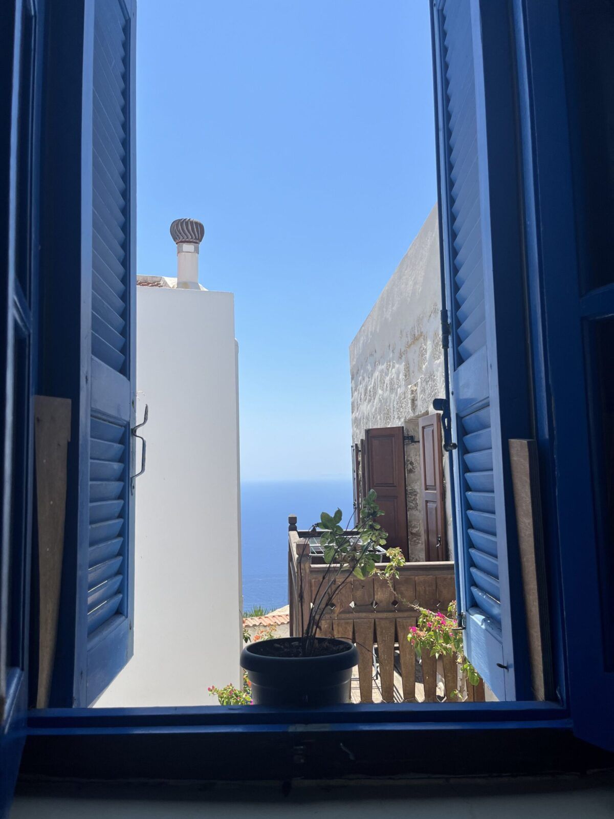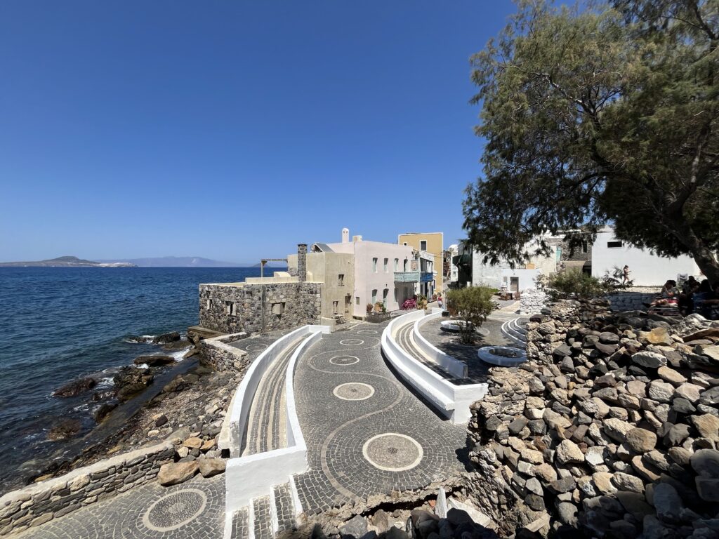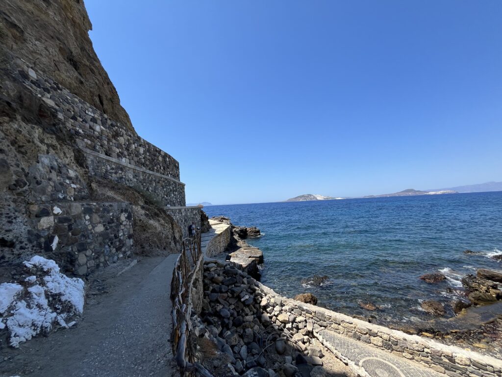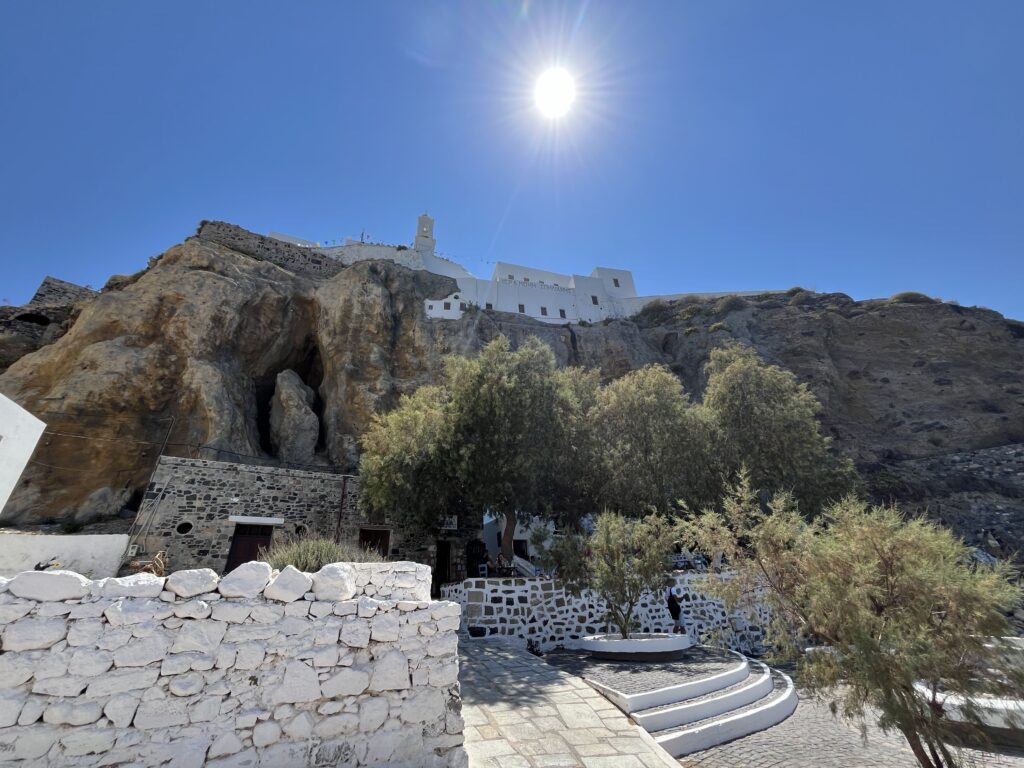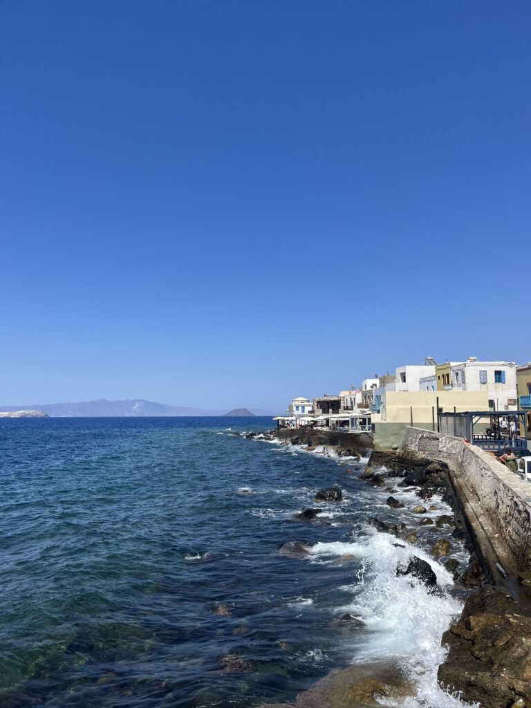 Piękna, malutka, pełna wąskich uliczek i biało- niebieskich domów. Jest tu zamek i klasztor na skale, klimatyczne tawerny położone nad samiutkim brzegiem morza, czarna plaża i port. Są tu też wypożyczalnie samochodów. Jest cudownie.