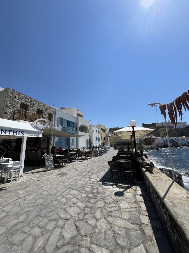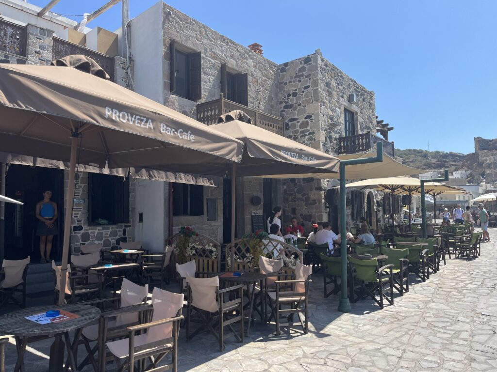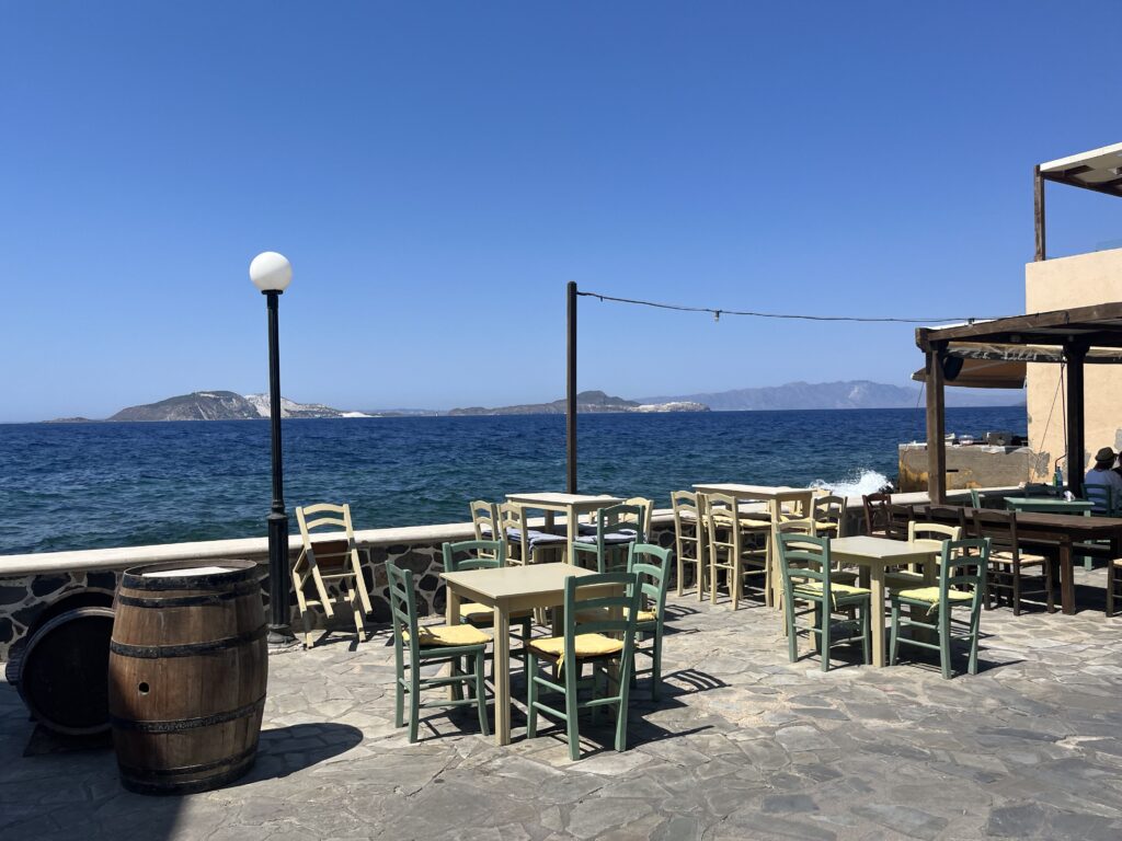 Nie mieliśmy na to czasu, gdyż wybraliśmy zwiedzanie miasteczka, ale z wielką chęcią usiedlibyśmy tu w greckiej tawernie i nacieszyli się słońcem, wiatrem, morzem i dobrym jedzeniem.