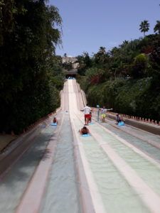 Zjeżdżalnie w parku są uruchamiane o godz. 10:00. Rano, zaraz po otwarciu kolejki do zjeżdżalni były nieduże, potem znacznie się wydłużały. Można wykupić sobie opcję „Fast pass”, wtedy wchodzi się oddzielnym wejściem na każdą ze zjeżdżalni i czas oczekiwania jest naprawdę krótszy, ale cena wejścia jest o wiele wyższa.