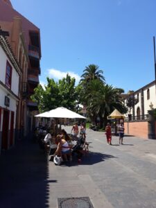 San Cristobal de La Laguna to miasto w północnej części Teneryfy, zwane potocznie La Laguną. Nasza wizyta w tym mieście rozpoczęła się od odwiedzenia słynnego rynku La Laguna, ponieważ chcieliśmy zdążyć jeszcze przed zamknięciem. Polecamy bardzo. Barwnie,  smacznie, rozmaicie. Stąd udaliśmy się szukać miejsca do zaparkowania. Starówka jest całkowicie zamknięta dla ruchu samochodowego, dlatego trzeba parkować na obrzeżach miasta. Troszkę się tu najeździliśmy, aby znaleźć miejsce parkingowe. Warto przyjechać do La Laguny, aby zobaczyć zabytkowe centrum miasta i pospacerować urokliwymi, kanaryjskimi uliczkami. Ulice tutaj są pełne zabytków, historycznych budynków i kościołów. Warto przejść się w centrum deptakiem przy którym znajduje się całe mnóstwo klimatycznych knajpek, kawiarni i restauracji. Niesamowicie miła atmosfera. Bardzo nam się tu podobało. Następnym razem chcielibyśmy przyjechać tu na dłużej, ponieważ upalna pogoda tego dnia odbierała siły na dłuższe zwiedzanie miasta.