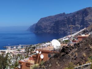 Los Gigantes– miejscowość położona na zachodnim wybrzeżu Teneryfy słynąca z gigantycznych klifów sięgających nawet 600 metrów wysokości. Widoki na na te przeogromne klify i ocean przepiękne. Jednak wydaje mi się, że widok od strony oceanu byłby ciekawszy niż od strony lądu. Warto więc byłoby się wybrać na taki rejs statkiem. Na tarasie widokowym znajduje się knajpka i sklepik z pamiątkami. W miasteczku jest niewielki port, obok którego znajduje się wulkaniczna plaża. W pobliżu dużo lokalnych restauracji. Miasteczko niewielkie. Podczas naszego pobytu odbywały się remonty dróg, przez to było tu bardzo ciasno, był problem z zaparkowaniem i widoki też nie były zachwycające. Samo miasteczko nie przypadło nam zbytnio do gustu. Ciasno, tłok, a mała, brudna plaża w cieniu ogromnych klifów sprawiała przytłaczające wrażenie.