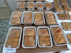 Baklavę trzeba koniecznie spróbować będąc na Krecie. Można ją kupić w cukierniach i w piekarniach, ale tę oryginalną i najpyszniejszą tylko na starówce w Rethymno, w piekarni Giorgosa Hatziparaskos. Widzieliśmy na własne oczy jak ten starszy pan własnoręcznie wykonywał ciasto filo. Byliśmy tu dwa razy. Baklava z tej cukierni to był nasz ulubiony deser do kawy. Znakomita! Tę baklavę przywieźliśmy do domu. Była pyszna i długo świeża, a poza tym fajnie zapakowana, więc świetna na prezent. Koniecznie odwiedźcie to miejsce.